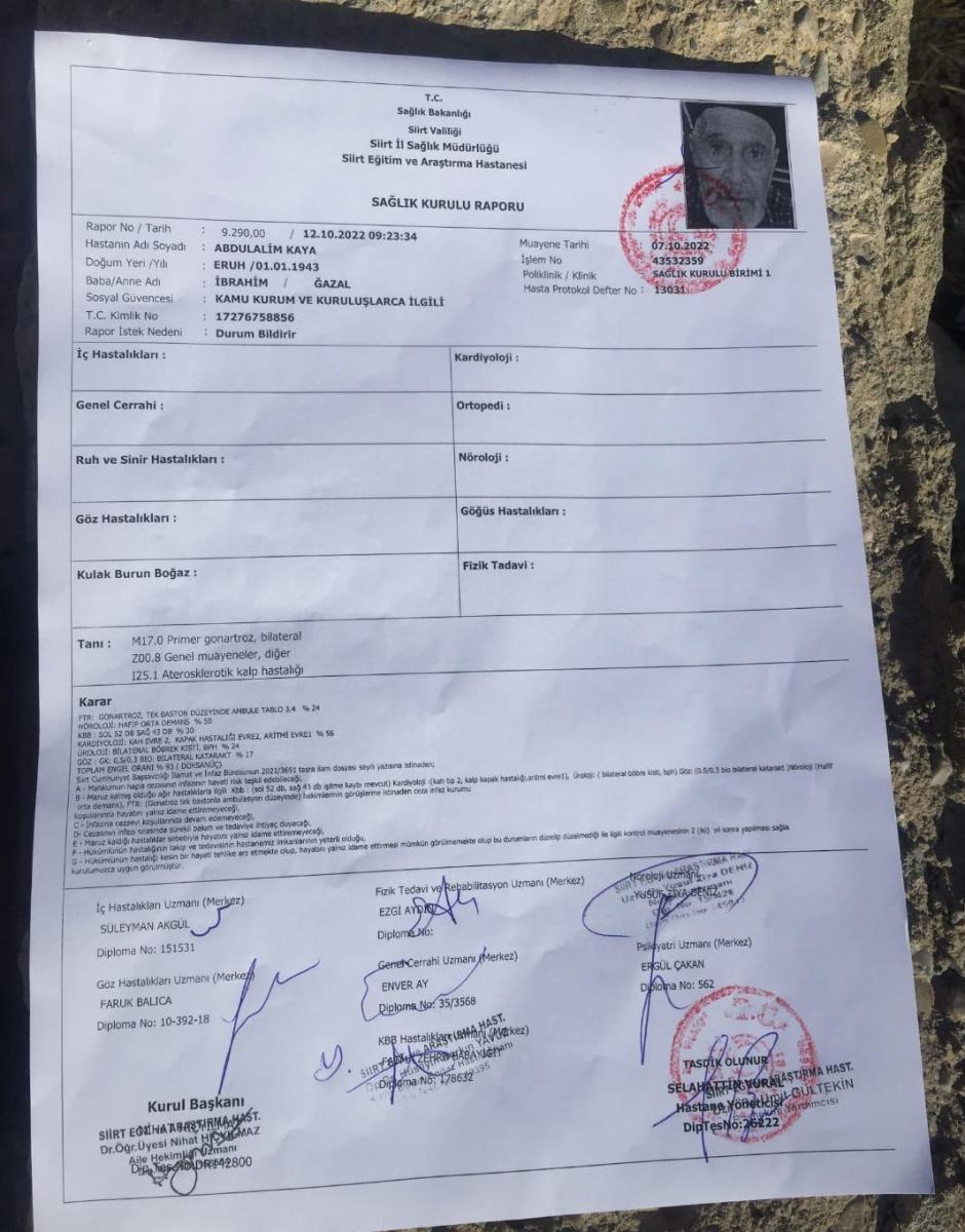 Hasta mahpus Abdulalim Kaya'nın hastane raporları
