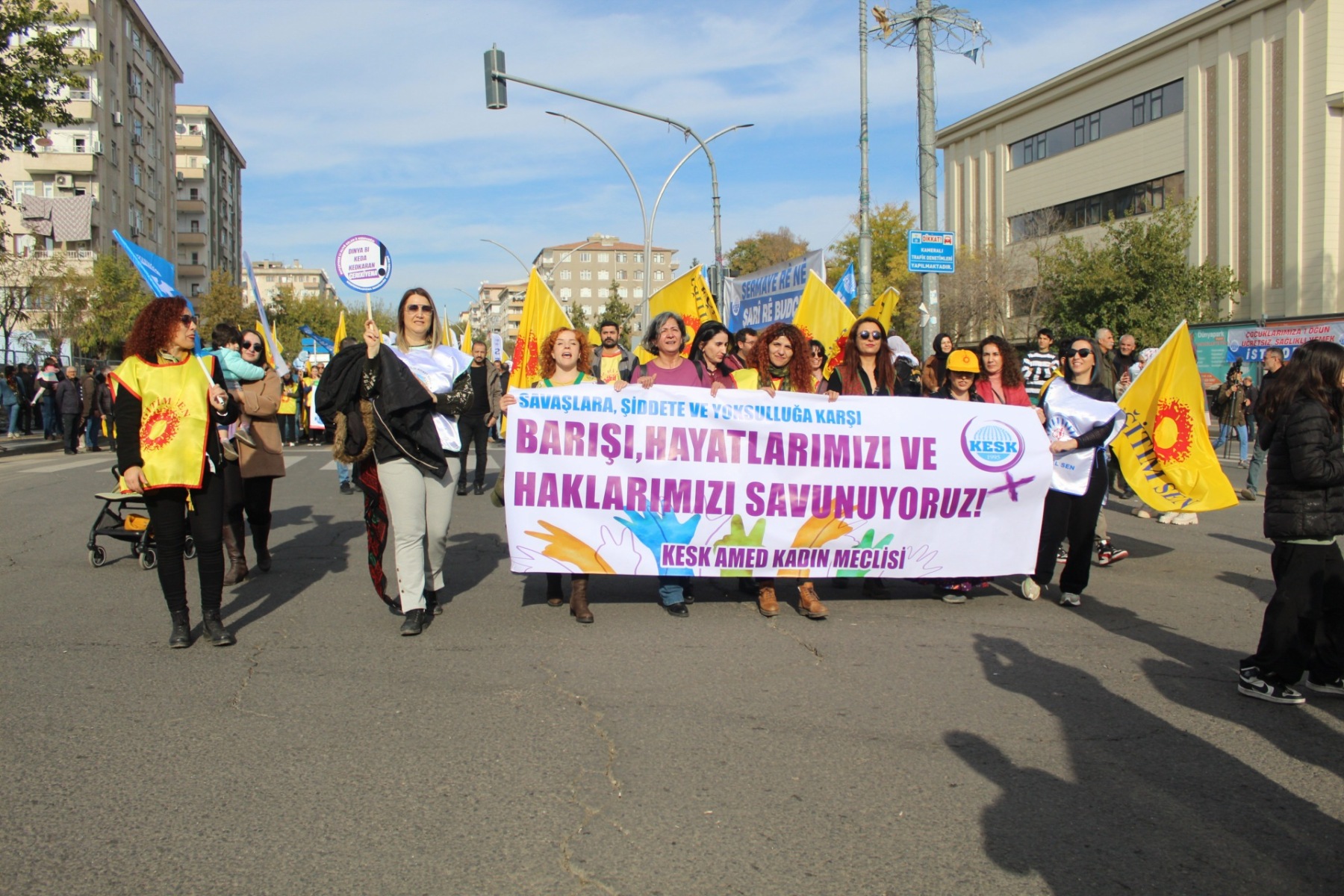 DİYARBAKIR – Kamu Emekçileri Sendikaları Konfederasyonu’nun (KESK), Diyarbakır İstasyon Meydanı’nda “Emekten yana demokratik halk bütçesi istiyoruz” sloganı ile düzenlediği bölge mitinginde asılan pankartlar dikkat çekti.