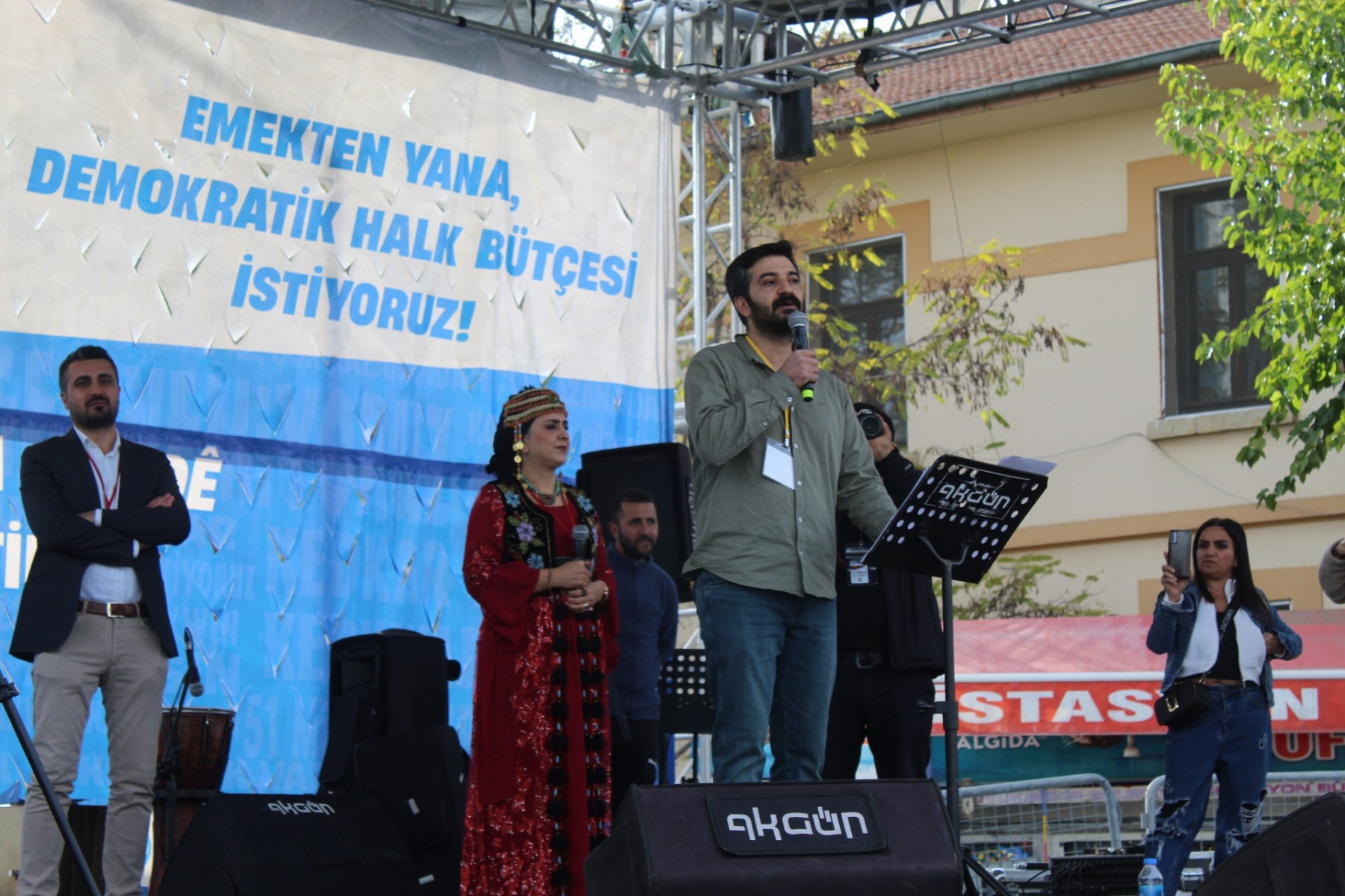 KESK Eş Genel Başkanı Şükran Kablan Yeşil, TTB Amed Şube Eşbaşkanı Elif Turan ve HEDEP Milletvekili Adalet Kaya’nın konuşma yaptığı mitingde, Miting Tertip Komitesi adına söz alan Amed Eğitim-Sen 2 Nolu Şube Eşbaşkanı Serhat Kılıç konuşmasının büyük bir bölümünü Zazaca olarak yaptı.